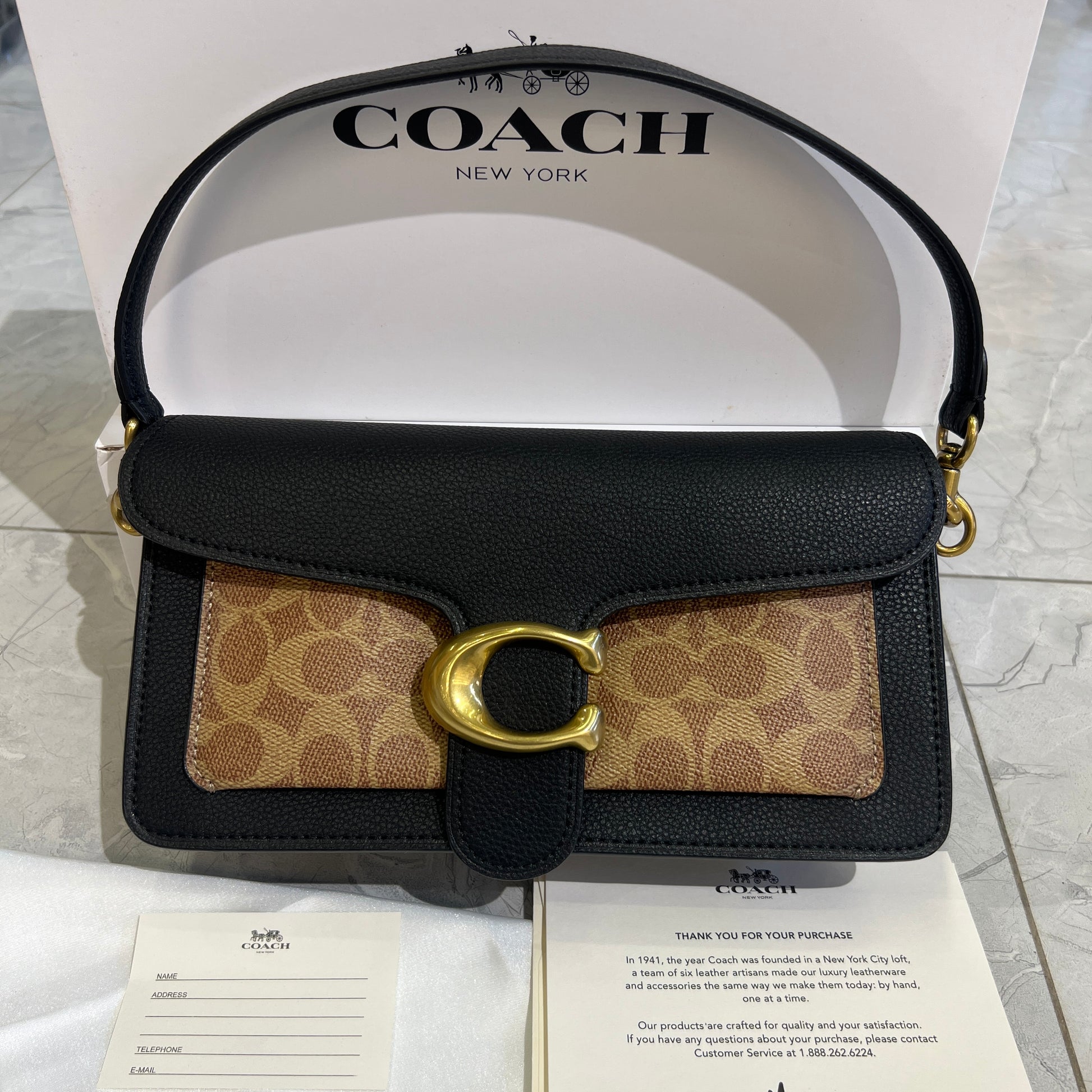 Sleek satchel combining neutral tones with monogram detail for a modern twist.
