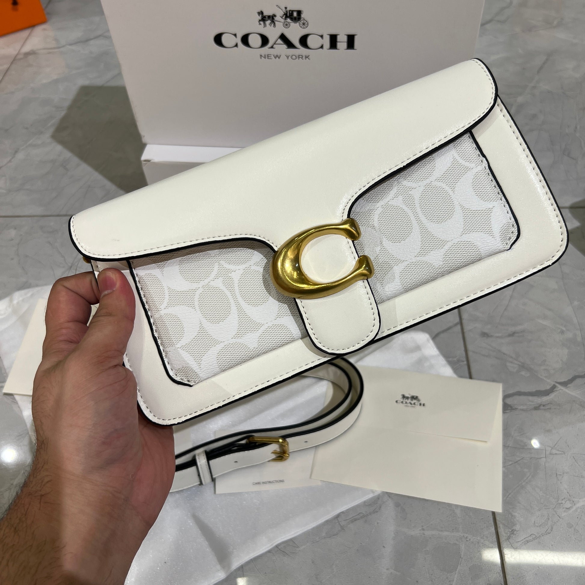 Soft white flap bag with a statement golden ring detail, bringing elegance to any look.