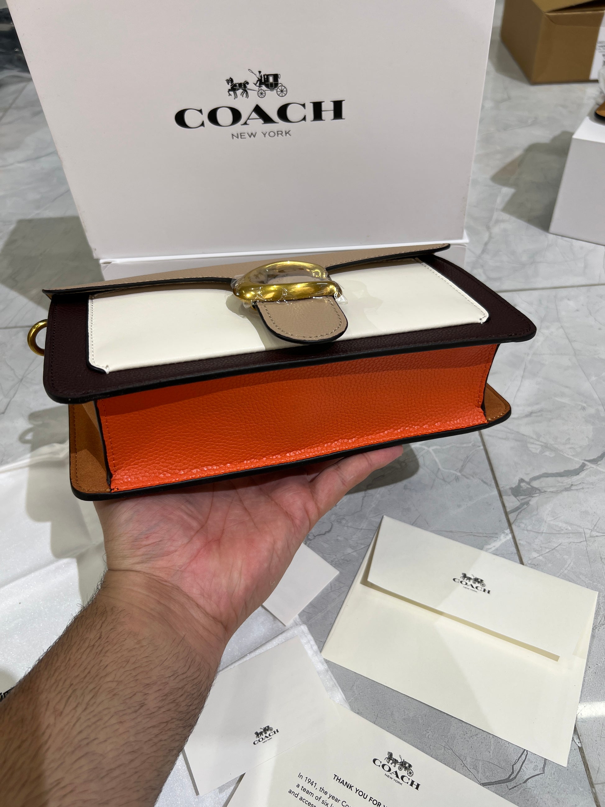 Two tone satchel with a structured silhouette, versatile for both workwear and weekend outfits.