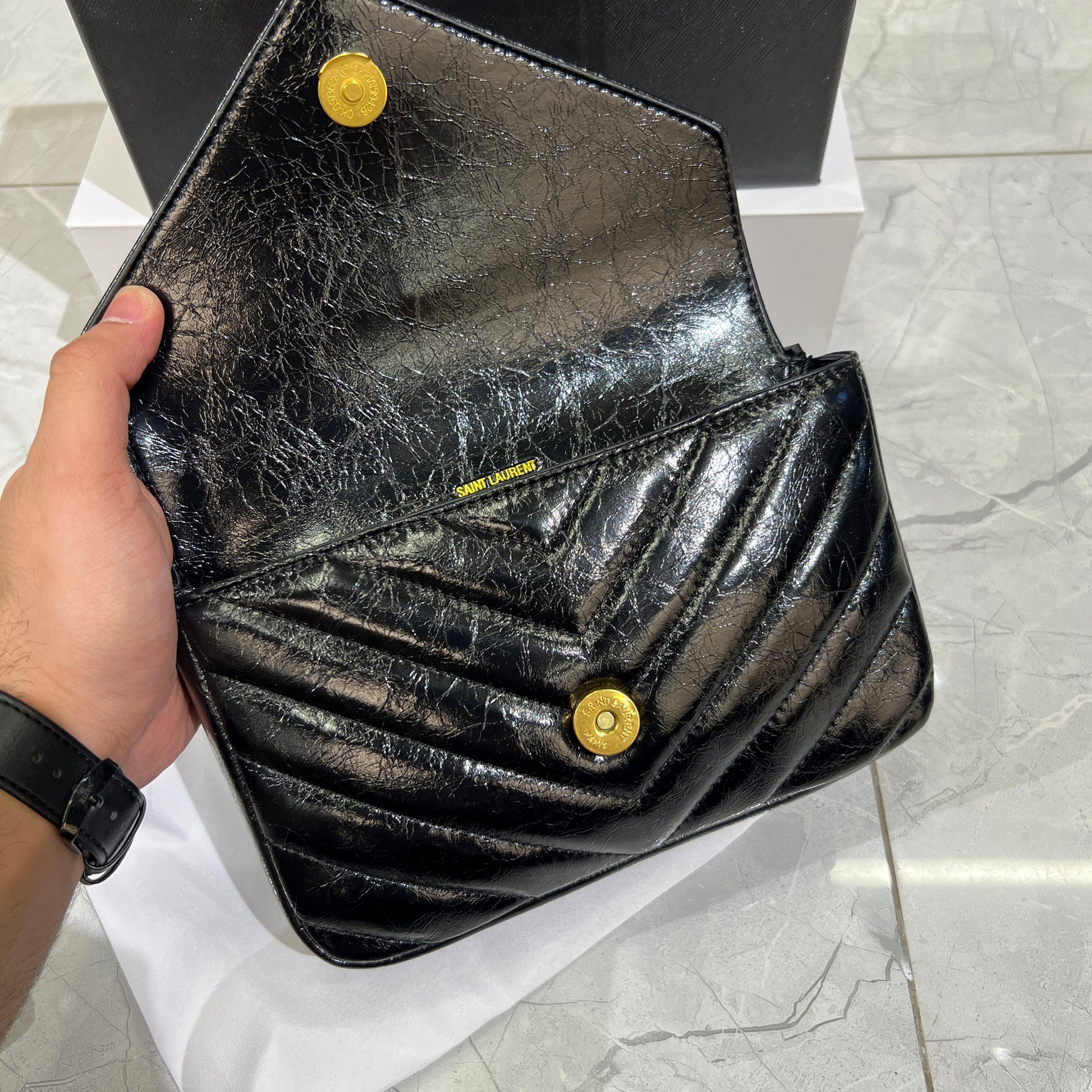 Timeless quilted design in black with a luxe gold accent, perfect for both day and night.