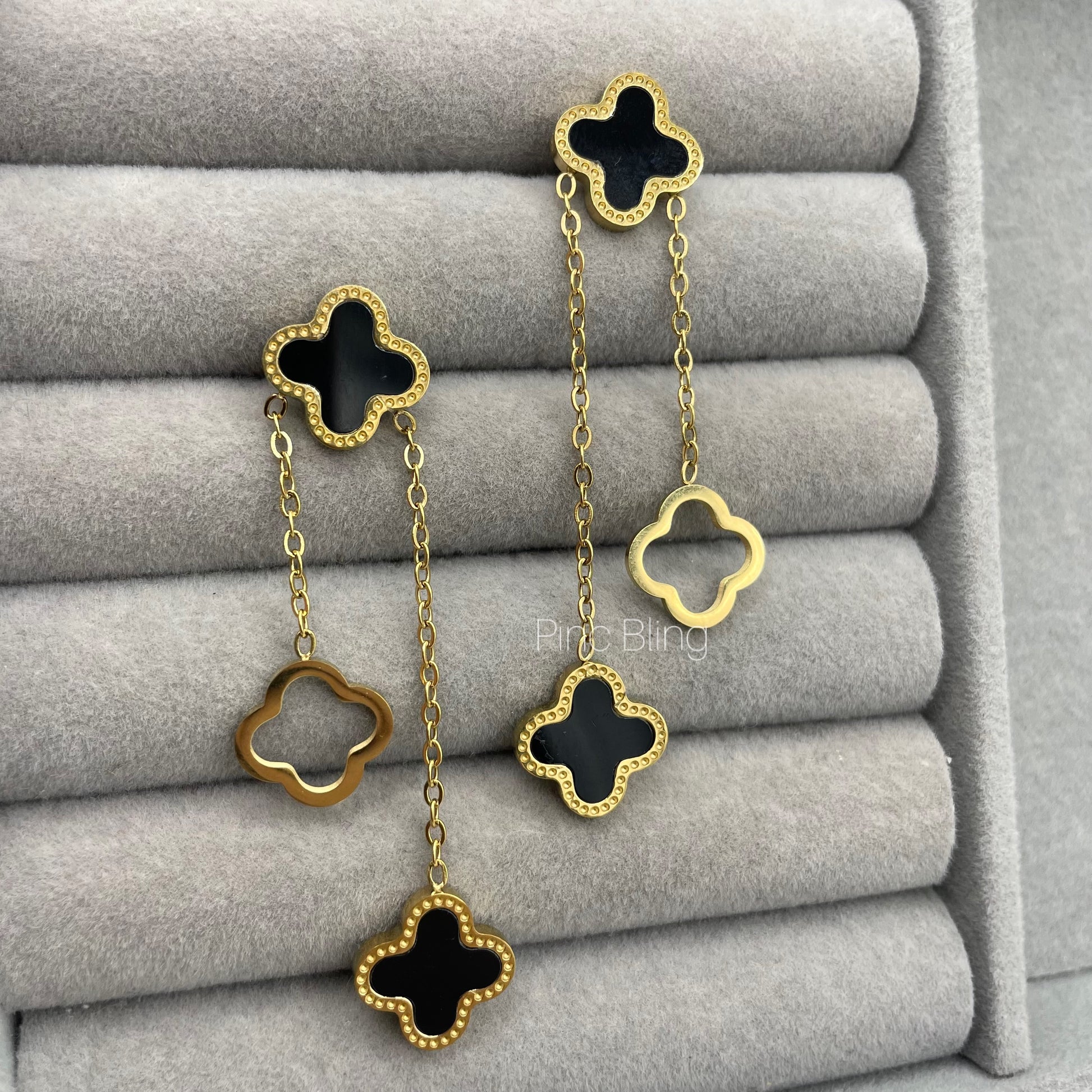Clover hanging earrings (black)