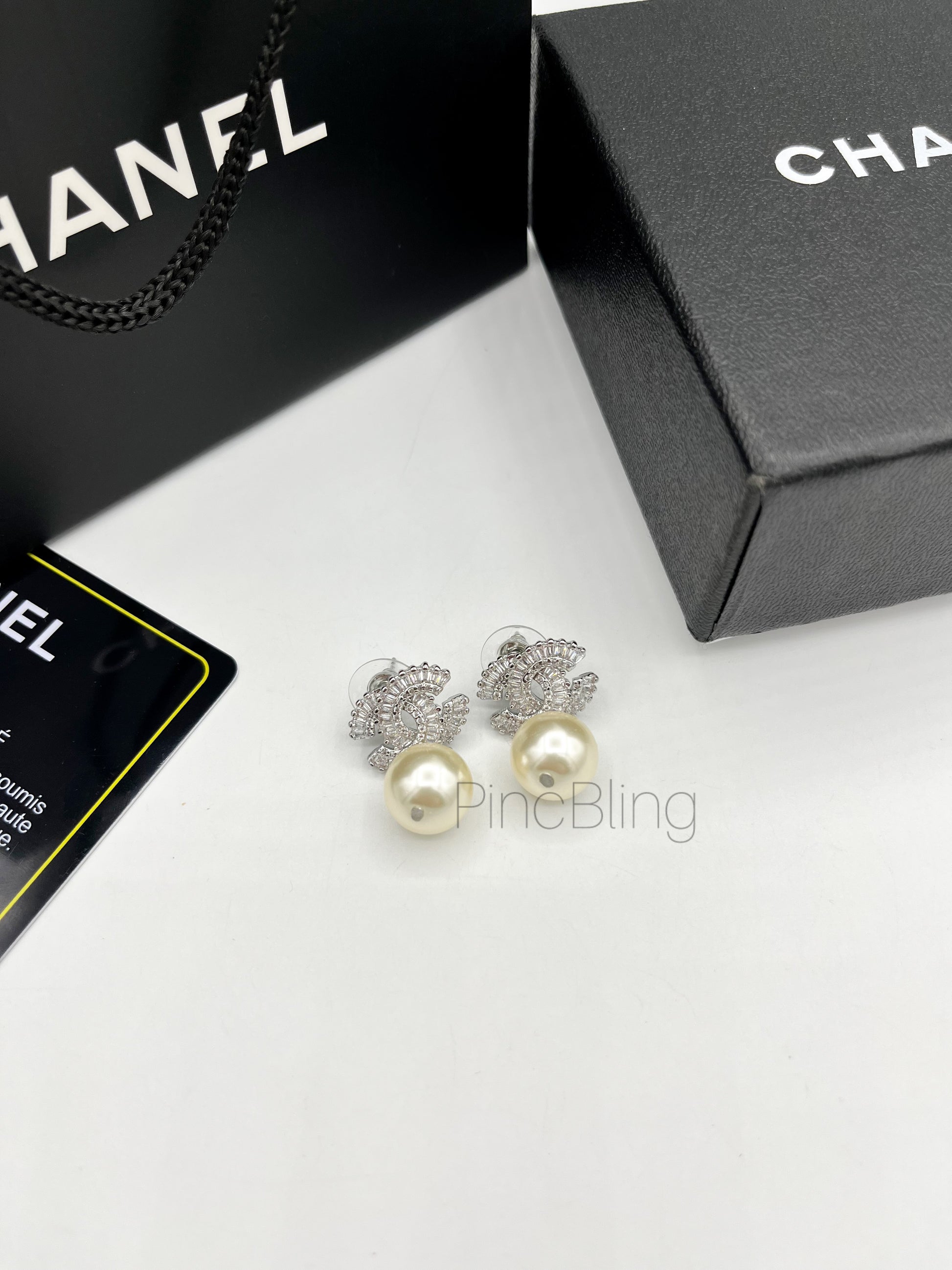 Pearl hanging branded earrings chnl
