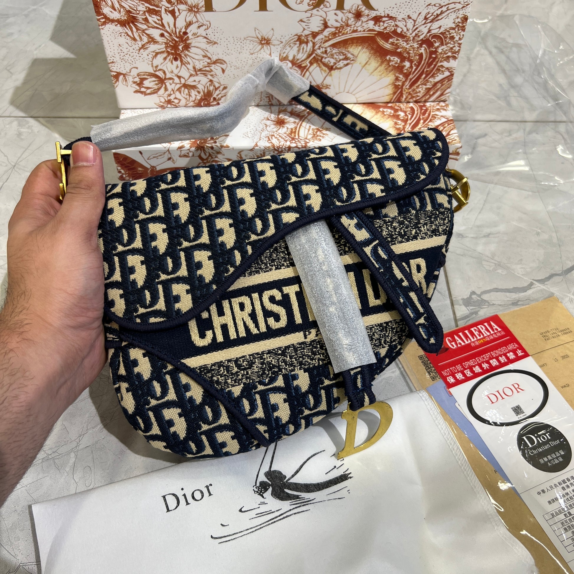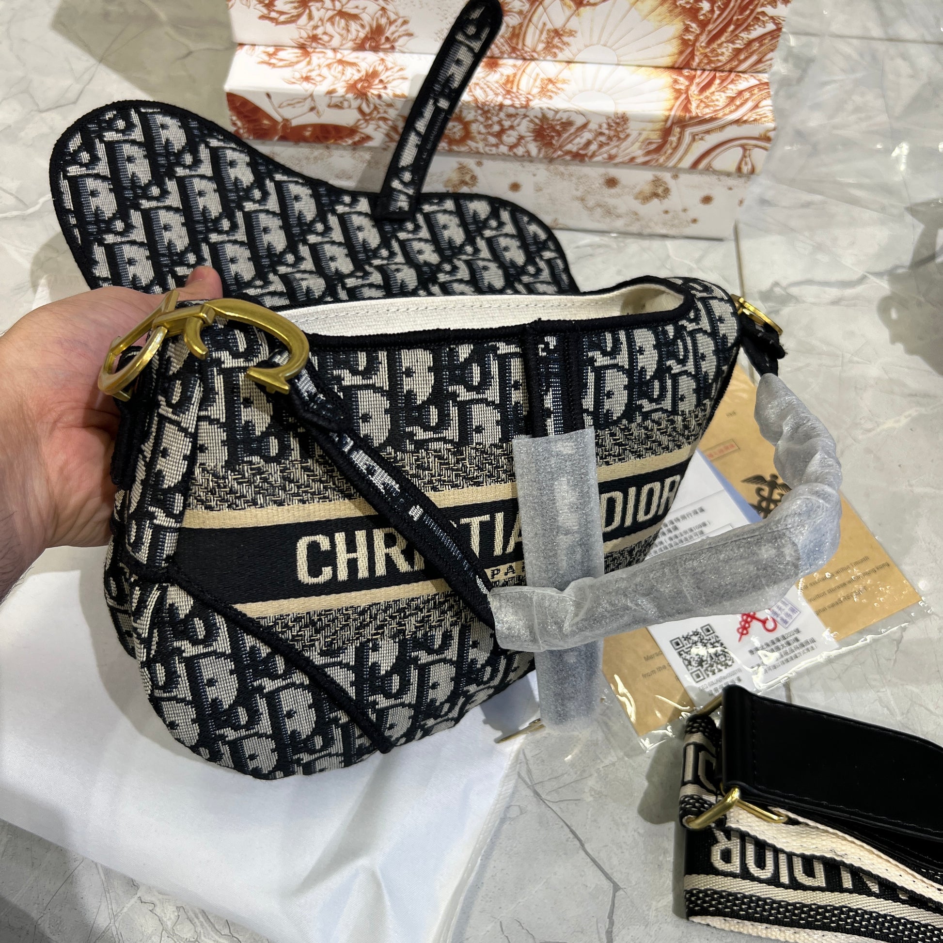 Classic saddle shaped crossbody with signature pattern and flap closure, great for casual chic looks.