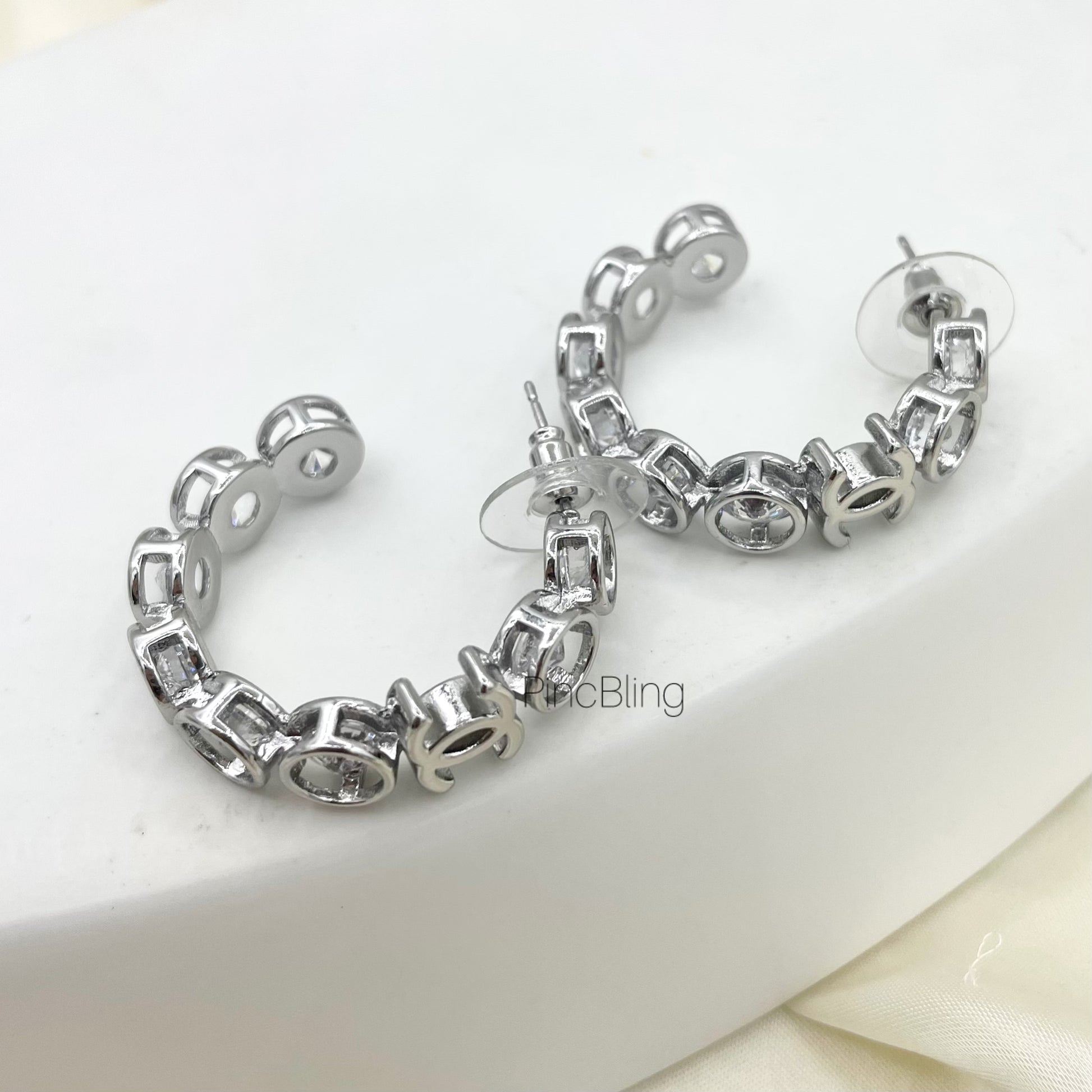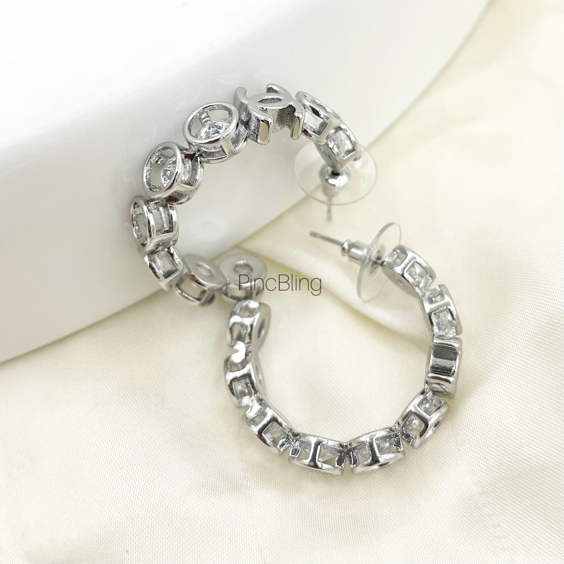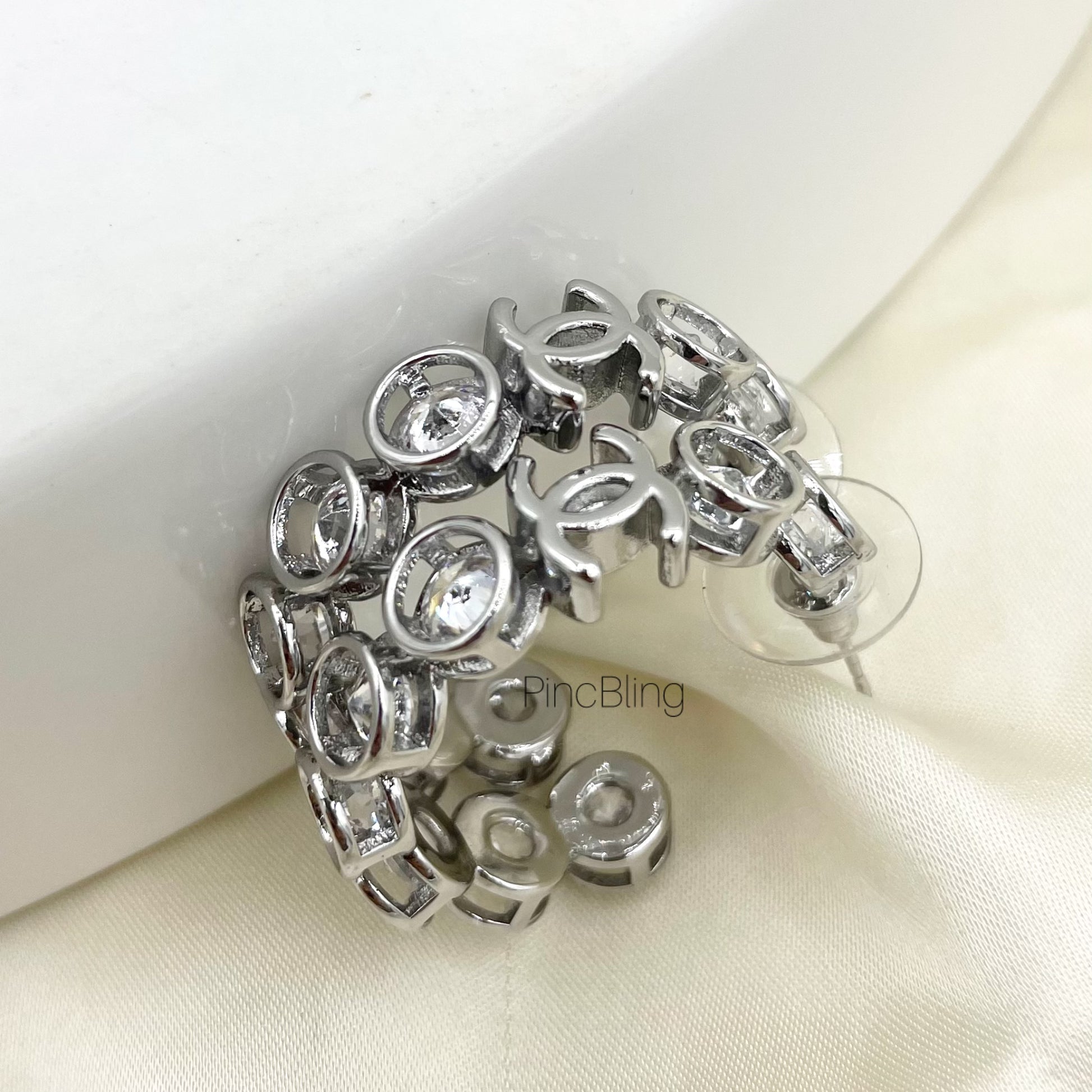 Interlocked open loops in polished silver