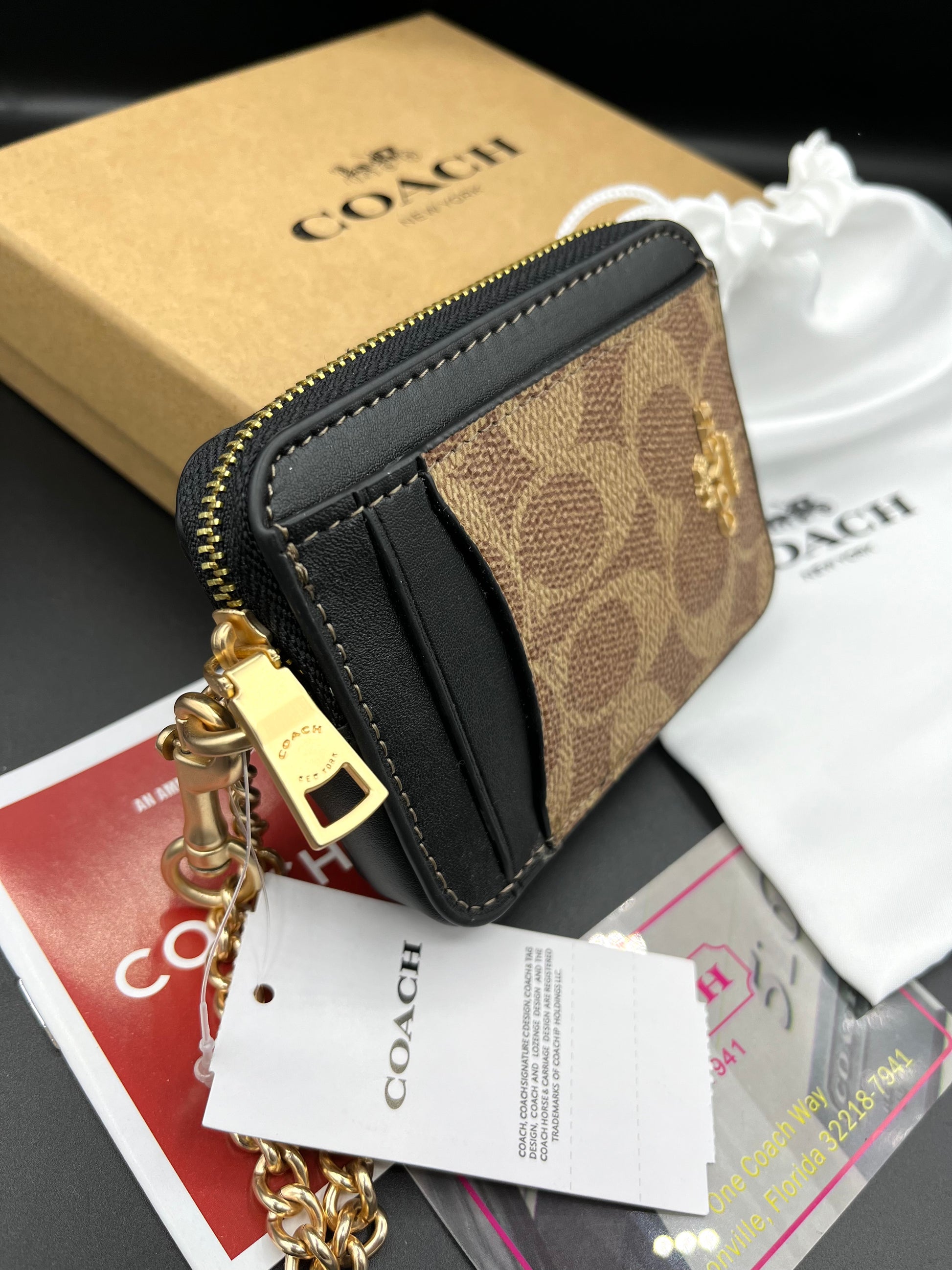 A refined card case combining signature canvas and smooth leather. The zip closure ensures security, while the structured design adds a polished finish.